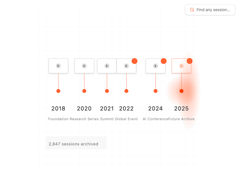 Yoursly's AI connects videos across topics, speakers, and events, creating dynamic archives that evolve with time. Every recording becomes part of a larger, searchable web of institutional knowledge — bridging past insights with future discovery.